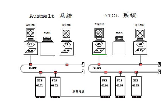 According to the whole-plant process control requirements, smelting DCS consists of two independent CENTUM CS1000 systems: Ausmelt system and YTCL system. Ausmelt system is mainly to monitor and control Ausmelt furnace part, while YTCL system is to monitor and control the auxiliary part of Ausmelt furnace and other process flows. Shielded cables are used to connect the I/O card of the two systems for realizing point-to-point data communication.