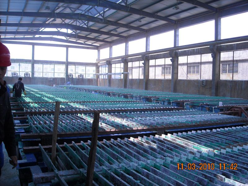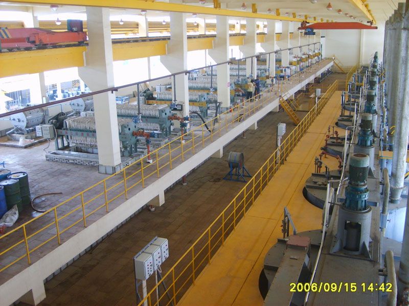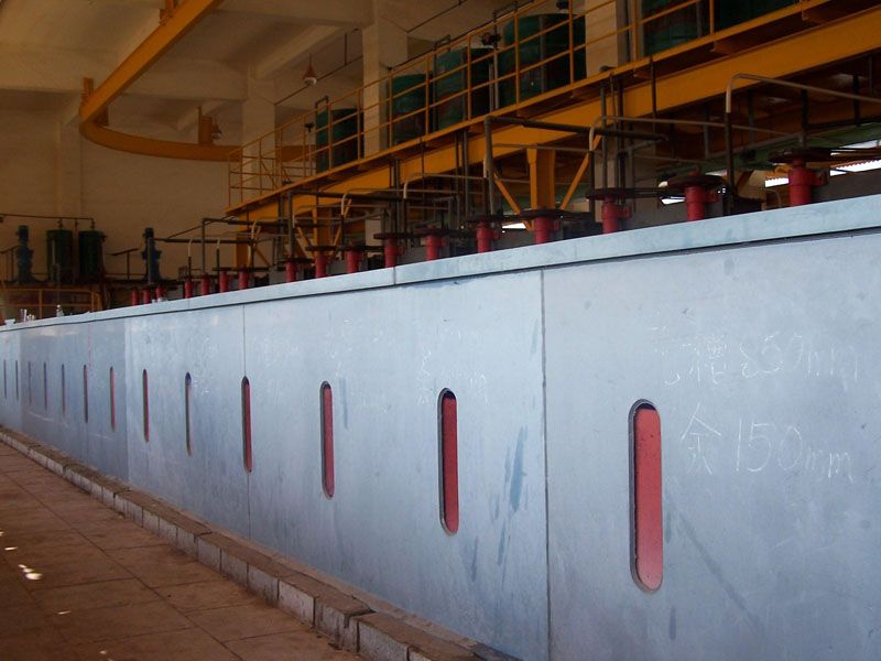在萃取設(shè)備上,多數(shù)使用混合澄清式萃取箱(包括淺池和深池式),個(gè)別項(xiàng)目用過(guò)離心萃取器,如金川3萬(wàn)噸加壓浸出項(xiàng)目;在萃取箱材質(zhì)上,可選擇PVC板、FRP、鋼襯FRP、砼襯FRP、不銹鋼等,各材質(zhì)萃取箱中國(guó)恩菲均涉及,且投入使用;在萃取箱規(guī)格上,恩菲所設(shè)計(jì)的,小至混合室尺寸150X150mm,大至直徑2000m,在鎳鈷精煉項(xiàng)目均已投產(chǎn)使用。