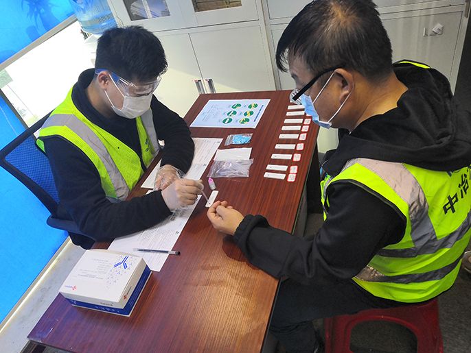 中冶天工深圳正本清源項(xiàng)目部選用新型冠狀病毒IgG/IgM抗體檢測(cè)試劑盒(膠體金法)檢測(cè)方法,可在10-15分鐘內(nèi)準(zhǔn)確測(cè)量結(jié)果,有效縮短了檢測(cè)時(shí)間、提高了檢測(cè)速度,使樣本采集方式更為便捷和安全。目前項(xiàng)目部已返崗人員均在返深四天后進(jìn)行了檢測(cè),檢測(cè)結(jié)果正常,待農(nóng)民工陸續(xù)返崗后項(xiàng)目部將另行組織檢測(cè),保障項(xiàng)目全員利用科技手段織密疫情防護(hù)網(wǎng),為全體人員健康狀況保駕護(hù)航。